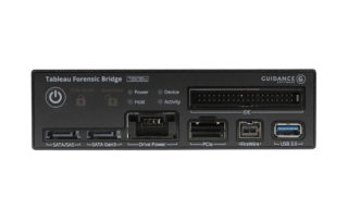 The Tableau Forensic Universal Bridge is an integrated write-blocker that mounts in a drive bay of a forensic workstation and supports forensic acquisitions of SATA, USB 3.0, PCIe, SAS, FireWire 800, and IDE.