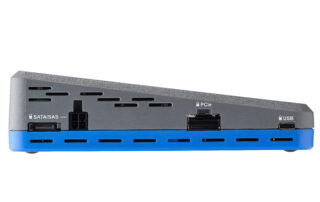 Three write-blocked source ports: SATA/SAS, PCIe, and USB 3.2 (Type-C)
